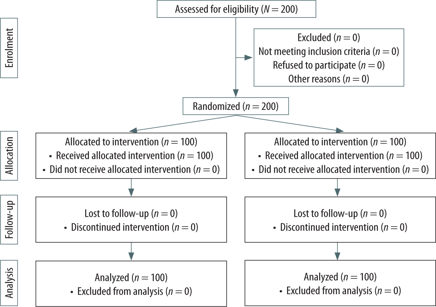 Two hundred patients were screened for eligibility, and no dropouts occurred at any stage of the study. Data from all 200 patients were included in the analysis (Figure 1).
