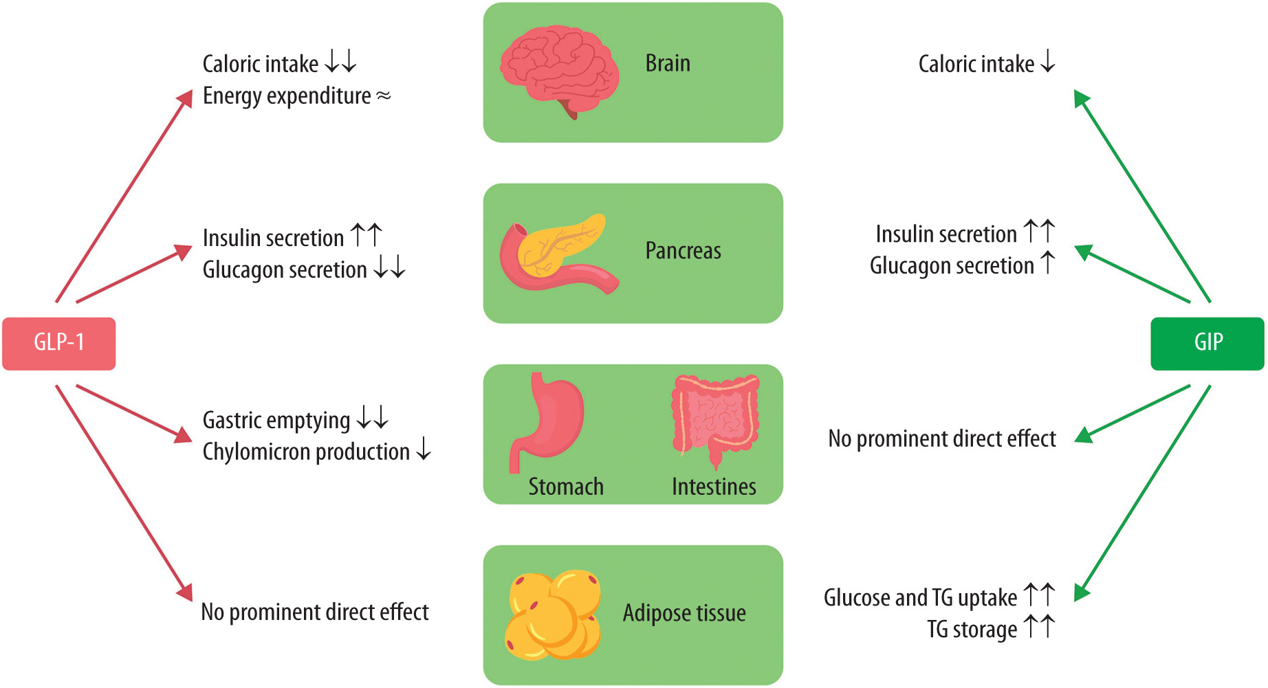 TG – triglycerides, GLP-1 – glucagon-like peptide-1, GIP – glucose-dependent insulinotropic polypeptide